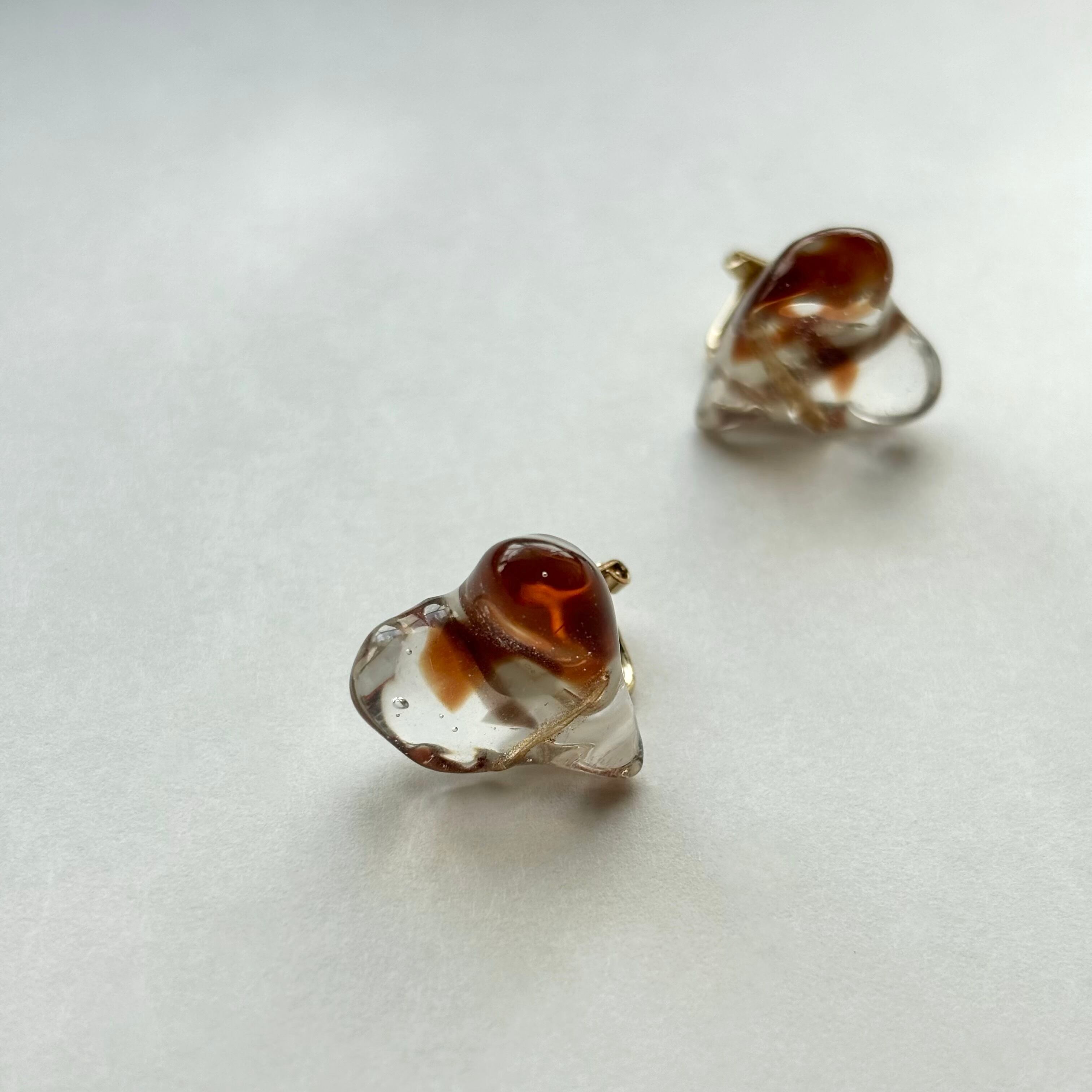 メルティハートピアス・イヤリング(ブラウン×ライトブラウン×ゴールド)