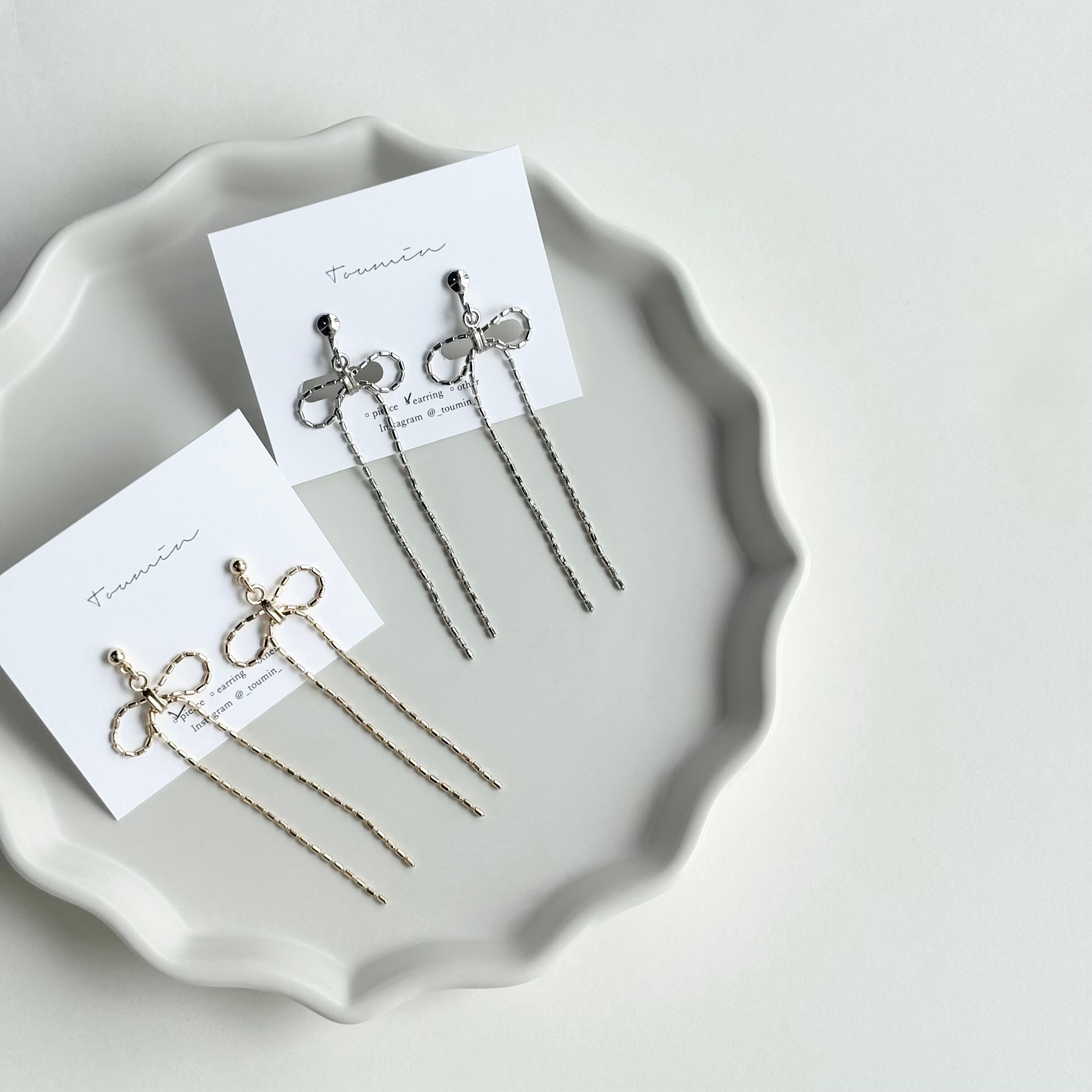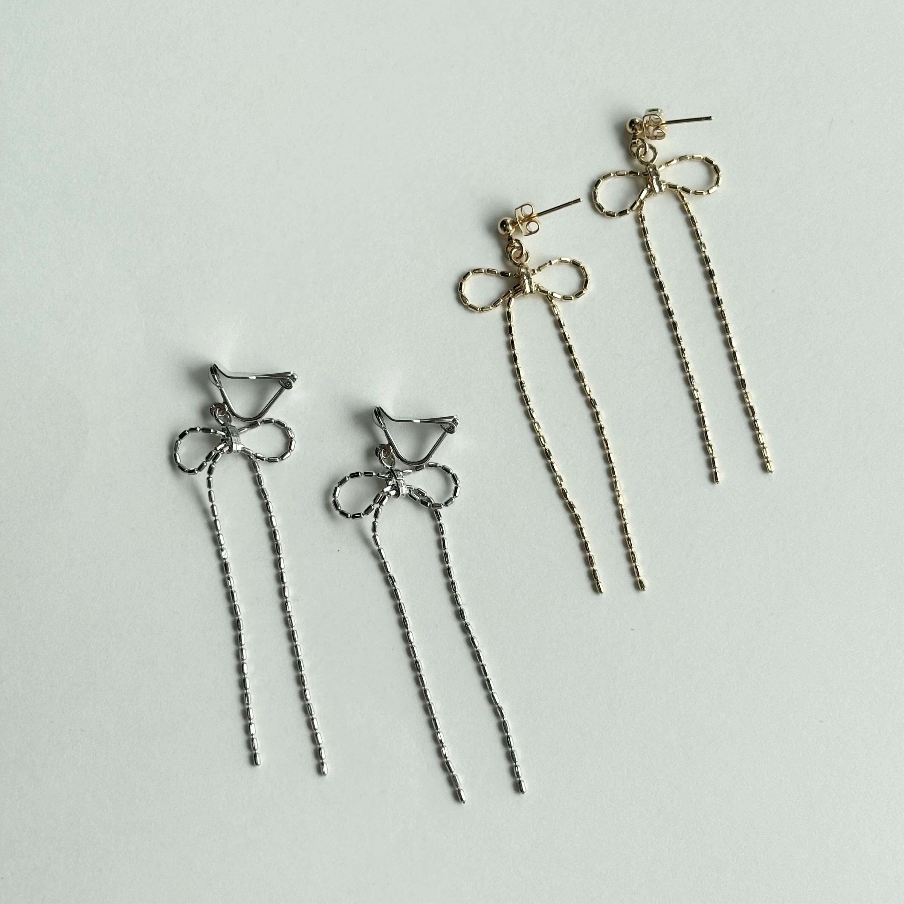 チェーンリボン ピアス・イヤリング(ゴールド/シルバー)